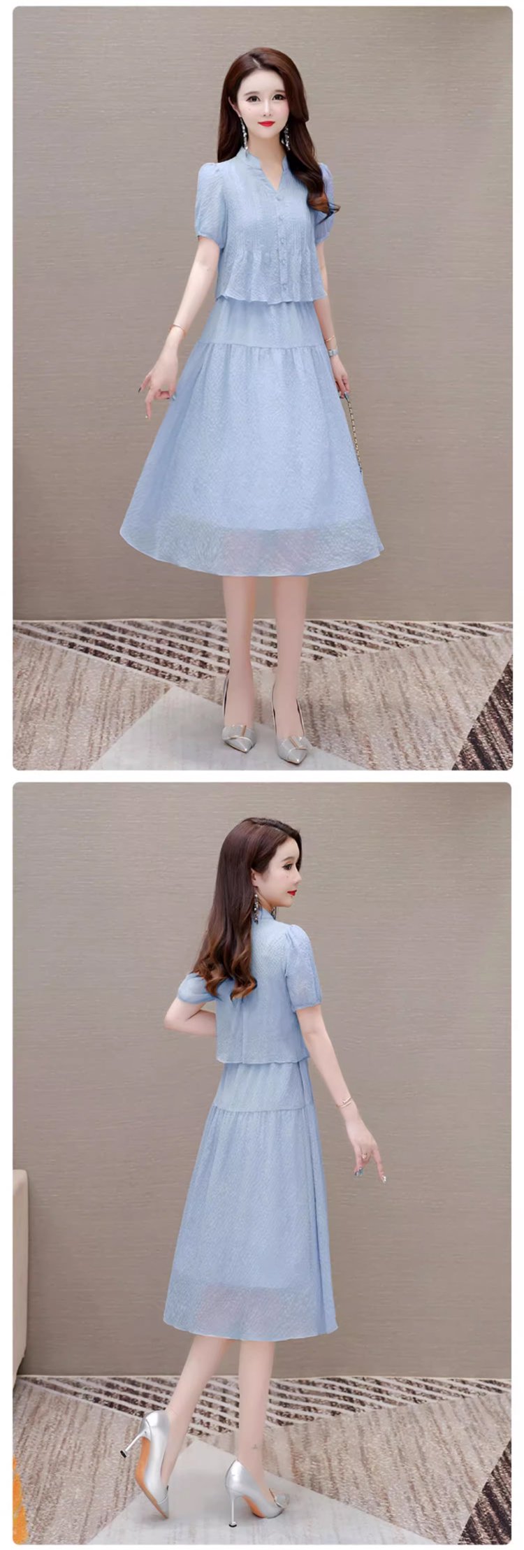 コットンリネンのレイヤードワンピース